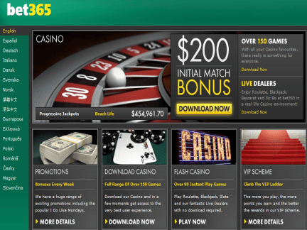 À part l'offre de bienvenue, la première promotion à laquelle vous attendre sur le site de Bet365 alimenté par Microgaming s'apparente au bonus d'inscription. Cette offre vous donne en effet l'opportunité de recevoir un bonus de 100% à hauteur de $500. Toutefois, pour la recevoir, en premier lieu, vous devez effectuer un dépôt minimum de $10. Ensuite, le pourcentage du bonus sera appliqué à votre plus gros dépôt au cours des 7 jours précédant la réclamation de l'incitation, en revanche, si une partie du dépôt est retirée sur le casino canadien, cette offre ne sera plus valable. Pour être éligible à effectuer des retraits, les clauses stipulent qu'il faut miser le montant de votre dépôt et du bonus 20x. À part cette offre, le casino Microgaming Bet365 propose d'autres promotions périodiques qui peuvent vous permettre de rafler de grosses cagnottes. Certaines promotions se déroulent sur le casino canadien Bet365 alimenté par Microgaming tous les mardis, jeudis, vendredis, samedis, dimanches et d'autres sont plutôt quotidiennes. Si vous êtes un passionné des machines à sous, de la roulette ou du blackjack, vous ne manquerez pas d'offres sur ce casino canadien. Il faut également préciser que casino Bet365 alimenté par Microgaming propose des paris sur les disciplines sportives, ainsi, vous trouverez aussi des promotions sur le football, le basketball, le tennis, le hockey et bien d'autres.